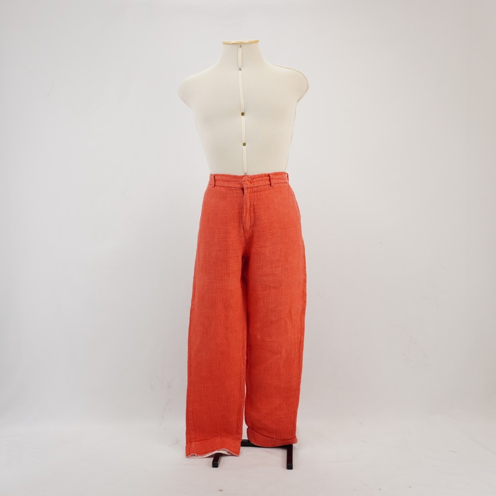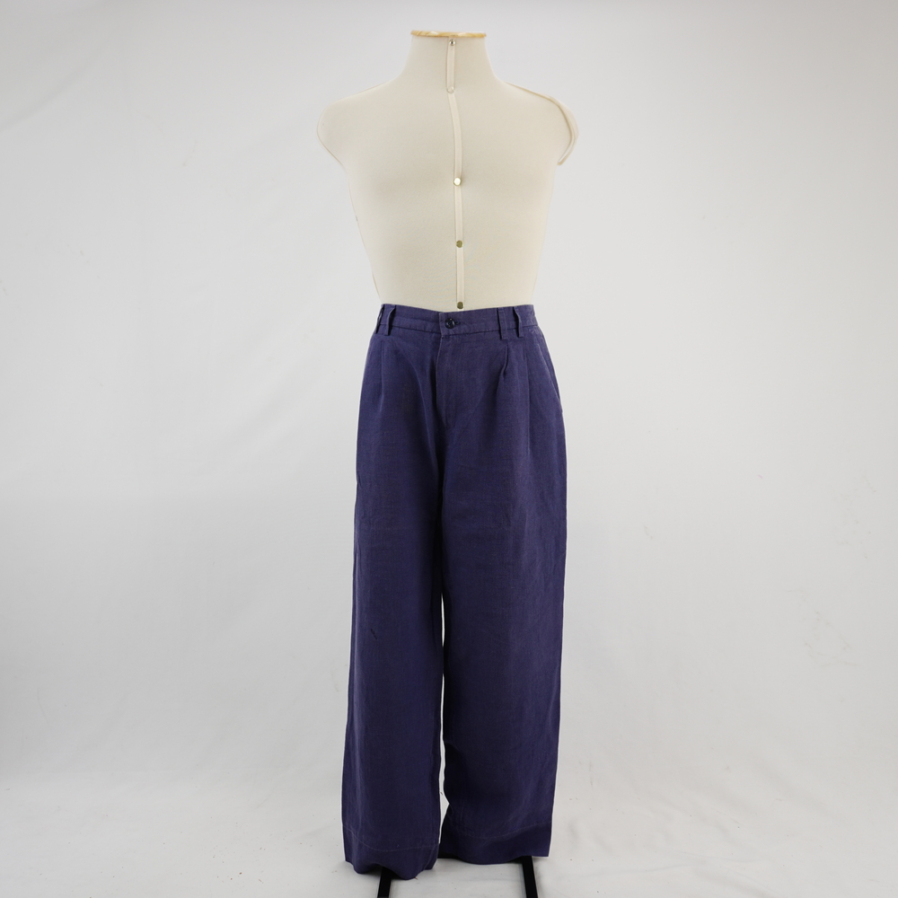 Calça azul marinho de alfaiataria reta, dois bolsos frontais com trovete nas extremidades, dois bolsos embutidos com botão no traseiro, quatro pregas frontais, duas pences traseiras, oito passantes,...