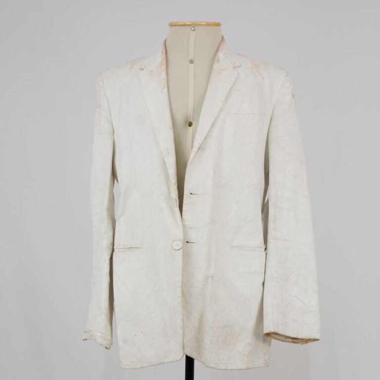 by Michelle Araujo Leia Mais...Blazer pintado de branco, três bolsos internos e três externos, fechamento com botões de plástico também pintados com tinta branca e forro branco