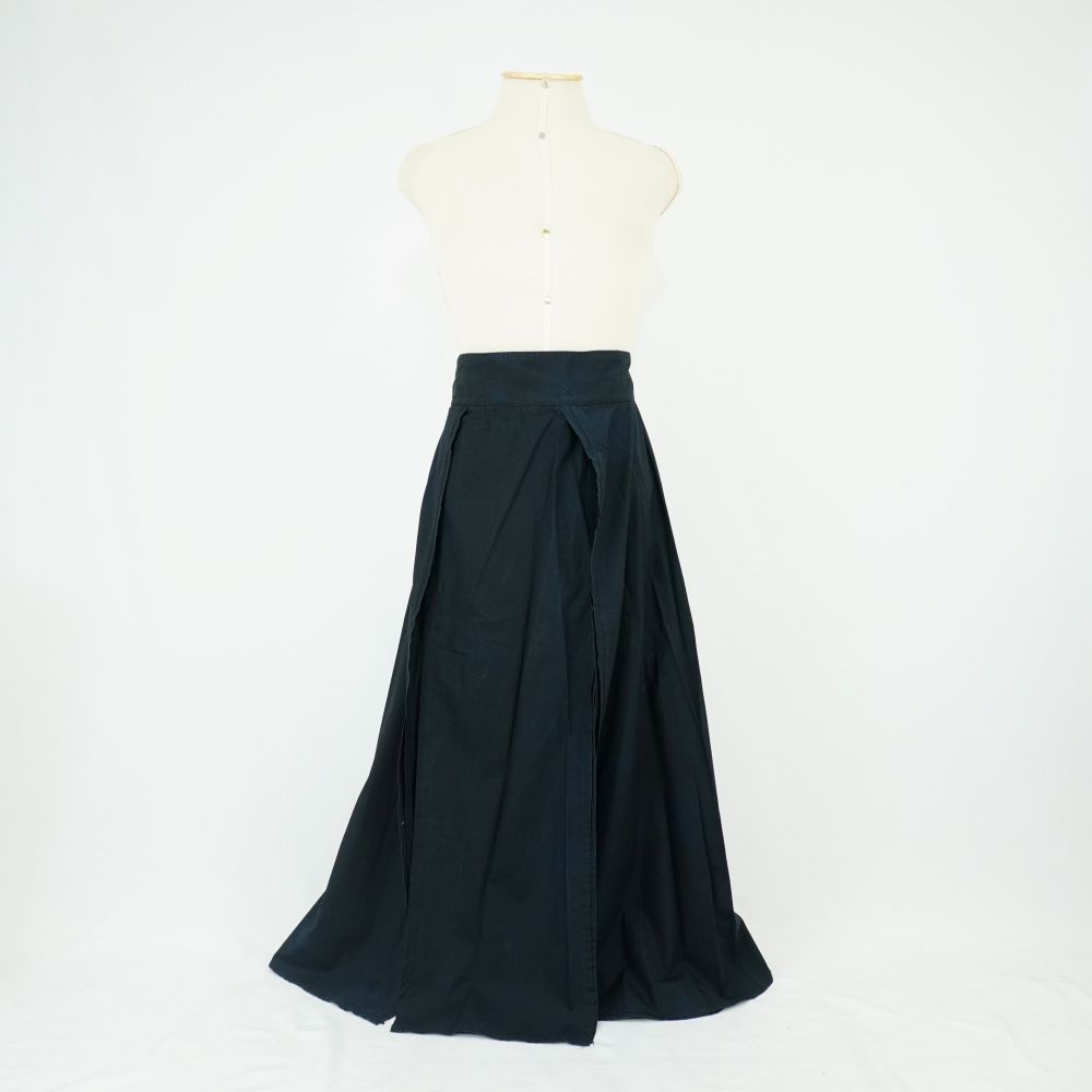 by Michelle Araujo Leia Mais...Saia preta feita de faixas verticais largas fixadas no cós, fechamento em colchetes e botões