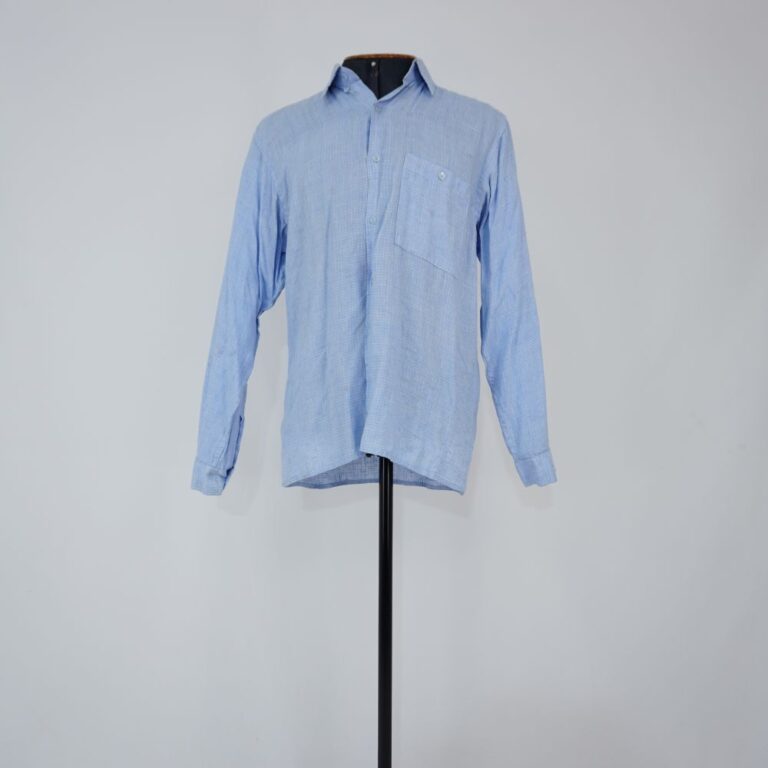 by Michelle Araujo Leia Mais...Camisa manga longa azul marinho com bolso do lado superior esquerdo, vista simples com fechamento em botões de plástico, com duas pregas nas costas