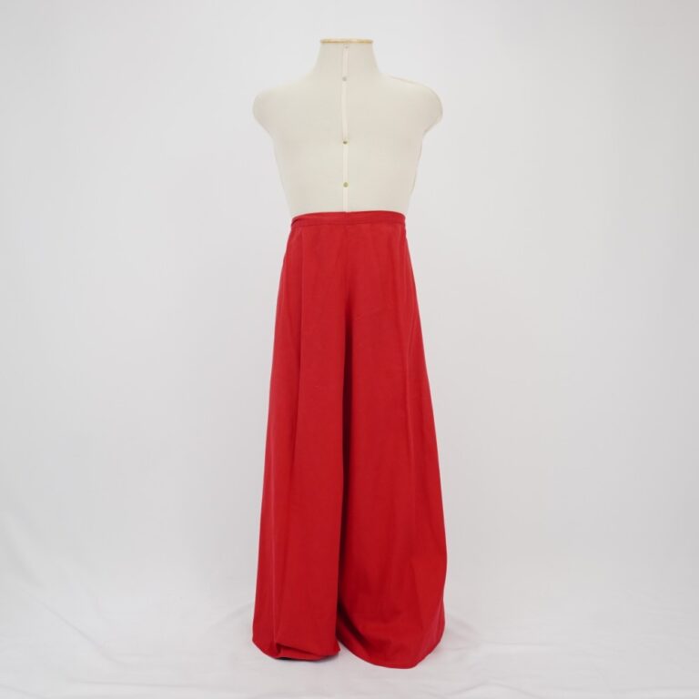 by Michelle Araujo Leia Mais...Calça envelope vermelha com amarração na cintura e barra arredondada.