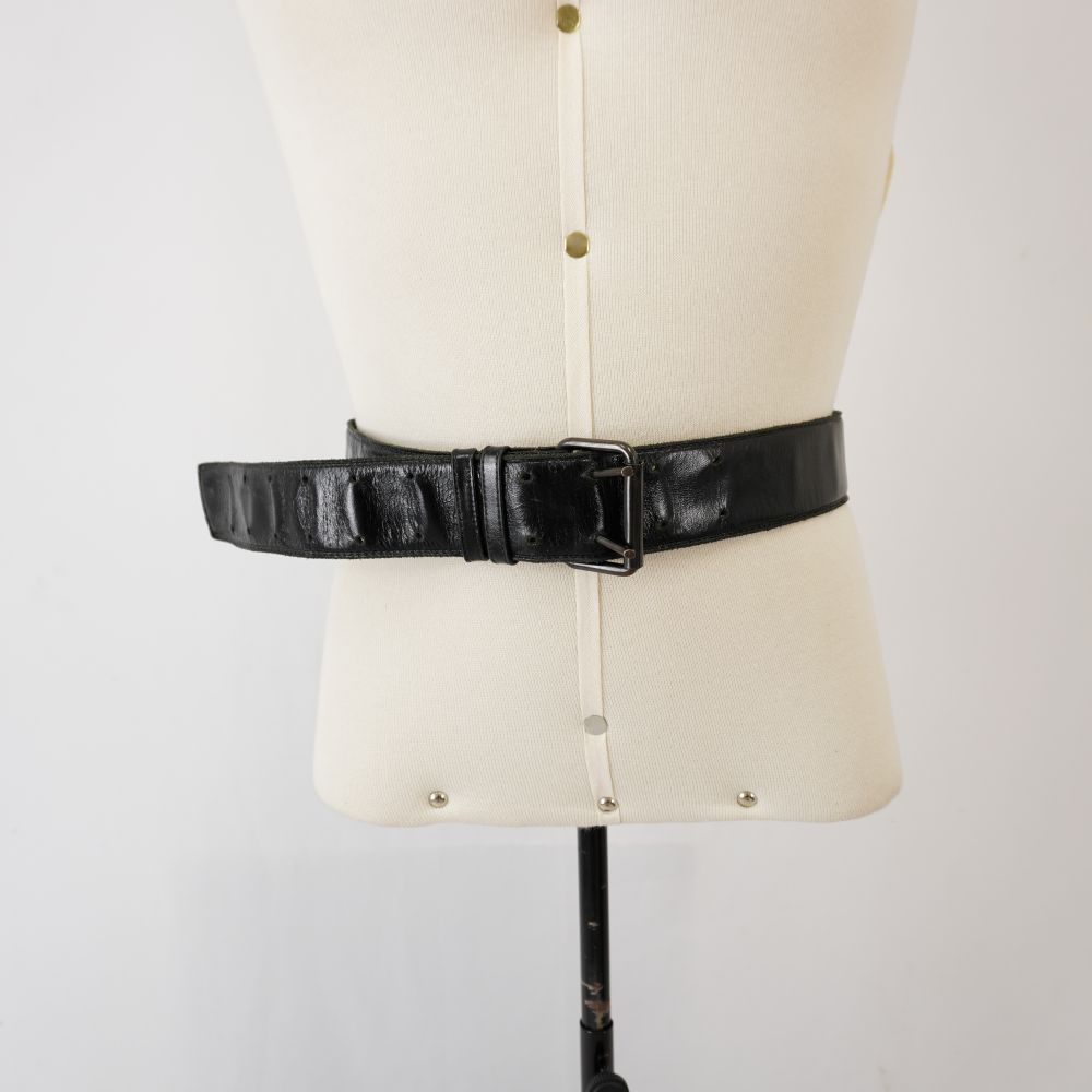 by Michelle Araujo Leia Mais...Cinto largo preto com fivela dupla de metal preto com duas passantes. Onze possibilidades de ajuste, material levemente brilhoso.