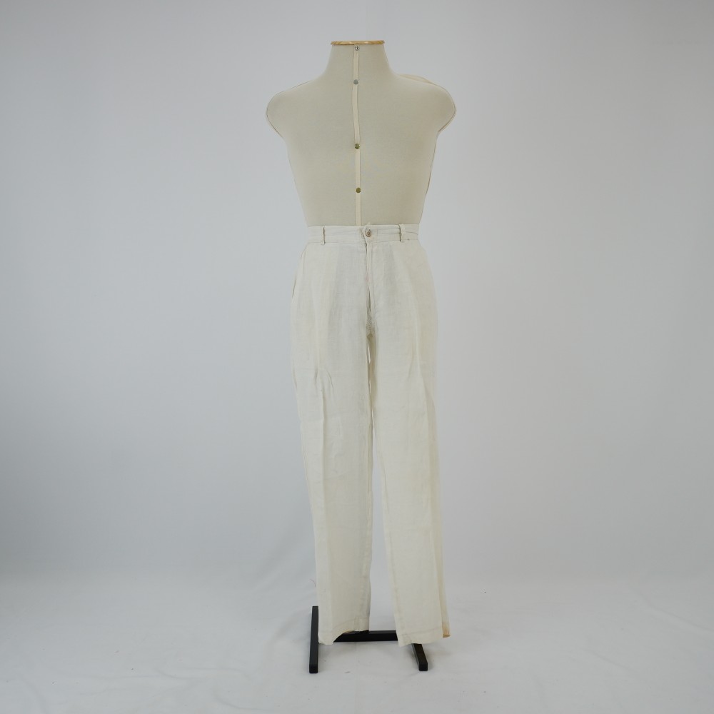 by Michelle Araujo Leia Mais...Calça reta Off White com dois bolsos na lateral, dois bolsos embutidos traseiros com fechamento de botão, duas pences traseiras, seis passantes, duas pences no cós traseiro para...