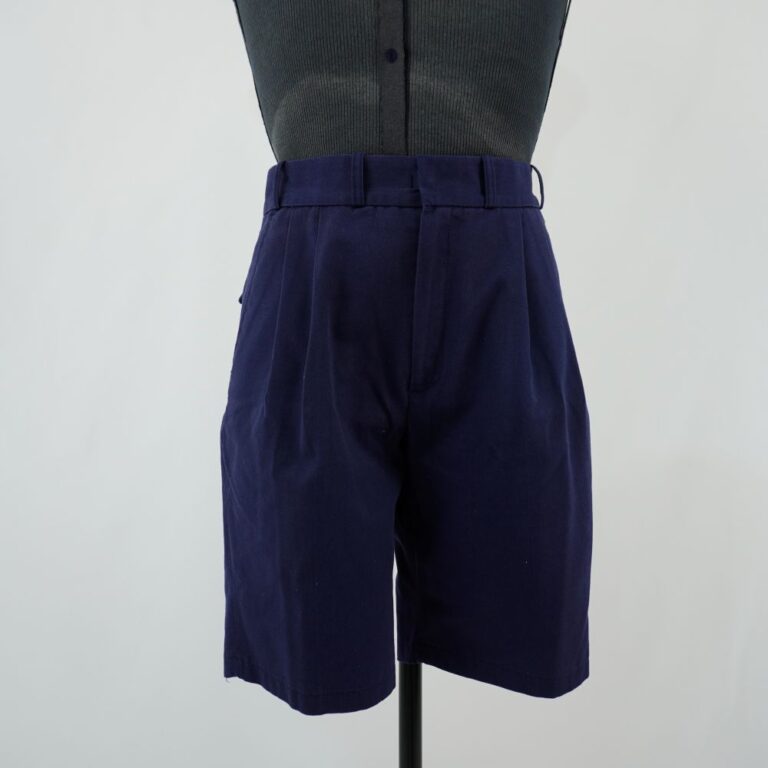 by Michelle Araujo Leia Mais...Bermuda azul marinho, em sarja, dois bolsos frontais e duas pregas, dois bolsos traseiros, fechamento em zíper metálico e colchete metalico