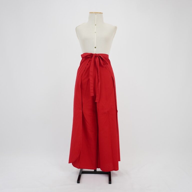 by Michelle Araujo Leia Mais...Calça envelope vermelha com amarração na cintura e barra arredondada. Customizada com costuras feitas à mão fechando a frente nela mesma.