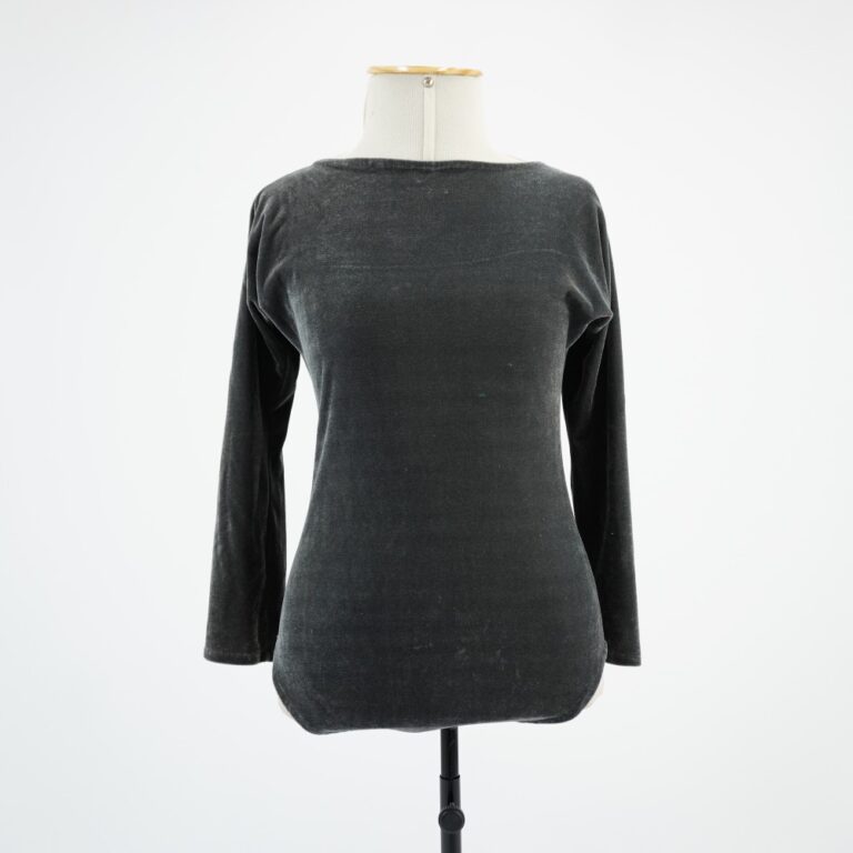 by Michelle Araujo Leia Mais...Collant cinza de manga 3/4 feito em veludo molhado. Com decote arredondado com elástico e e elásticos na cava das pernas