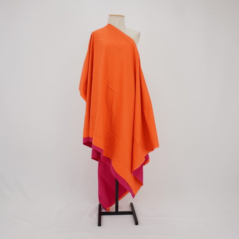 by Michelle Araujo Leia Mais...Capa-túnica de modelagem ampla, dupla face. Uma face em tecido laranja, outra face em tecido rosa. Abertura para passagem da cabeça no meio do tecido e barras a...