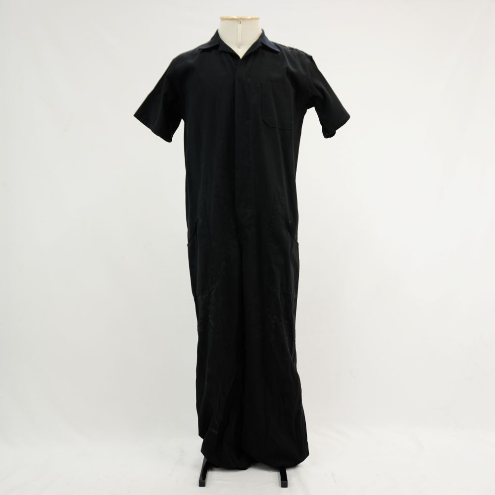 by Michelle Araujo Leia Mais...Macacão preto utilitário manga curta, três bolsos frontais e dois traseiros, fechamento em cinco botões com vista embutida, com elástico na cintura no meio das costas