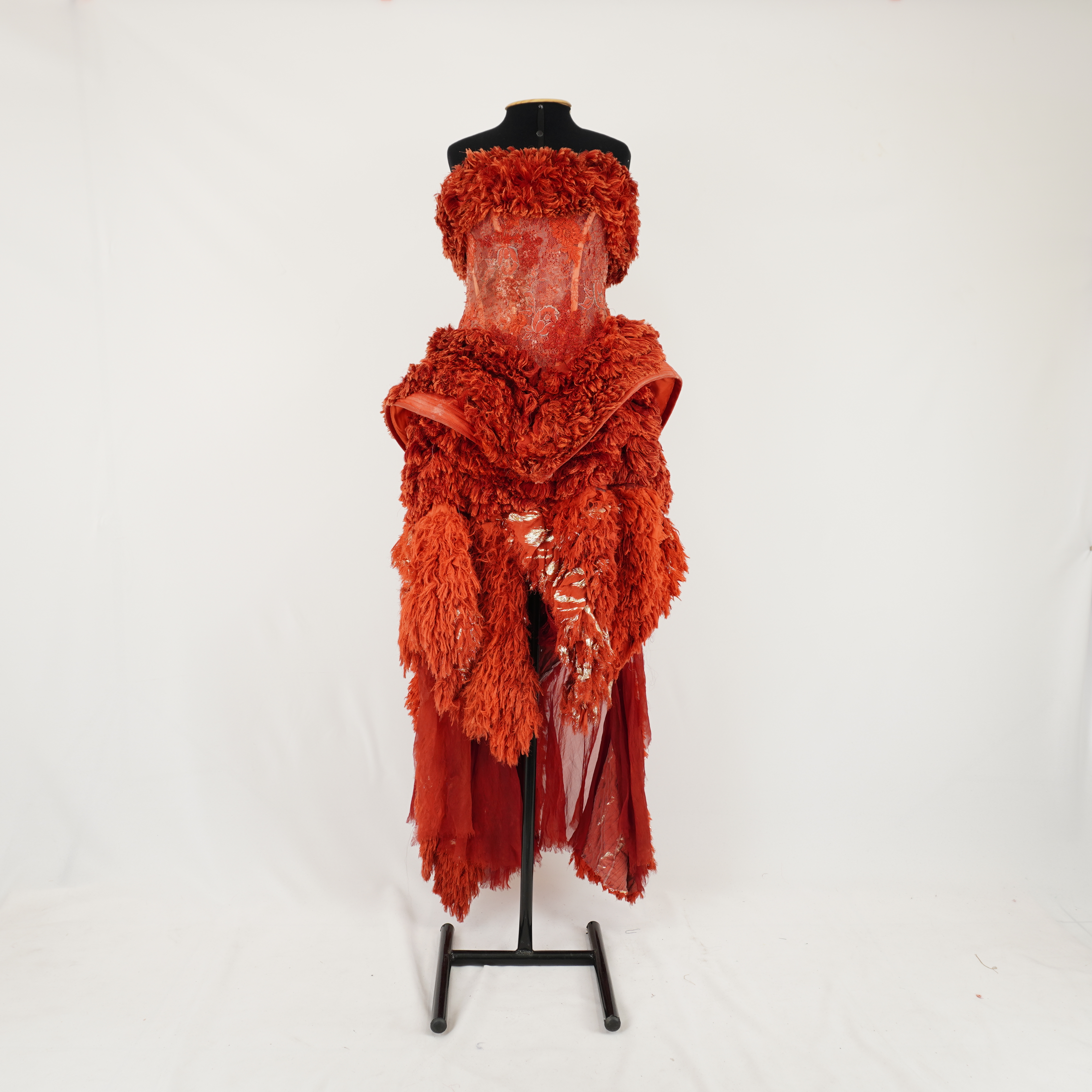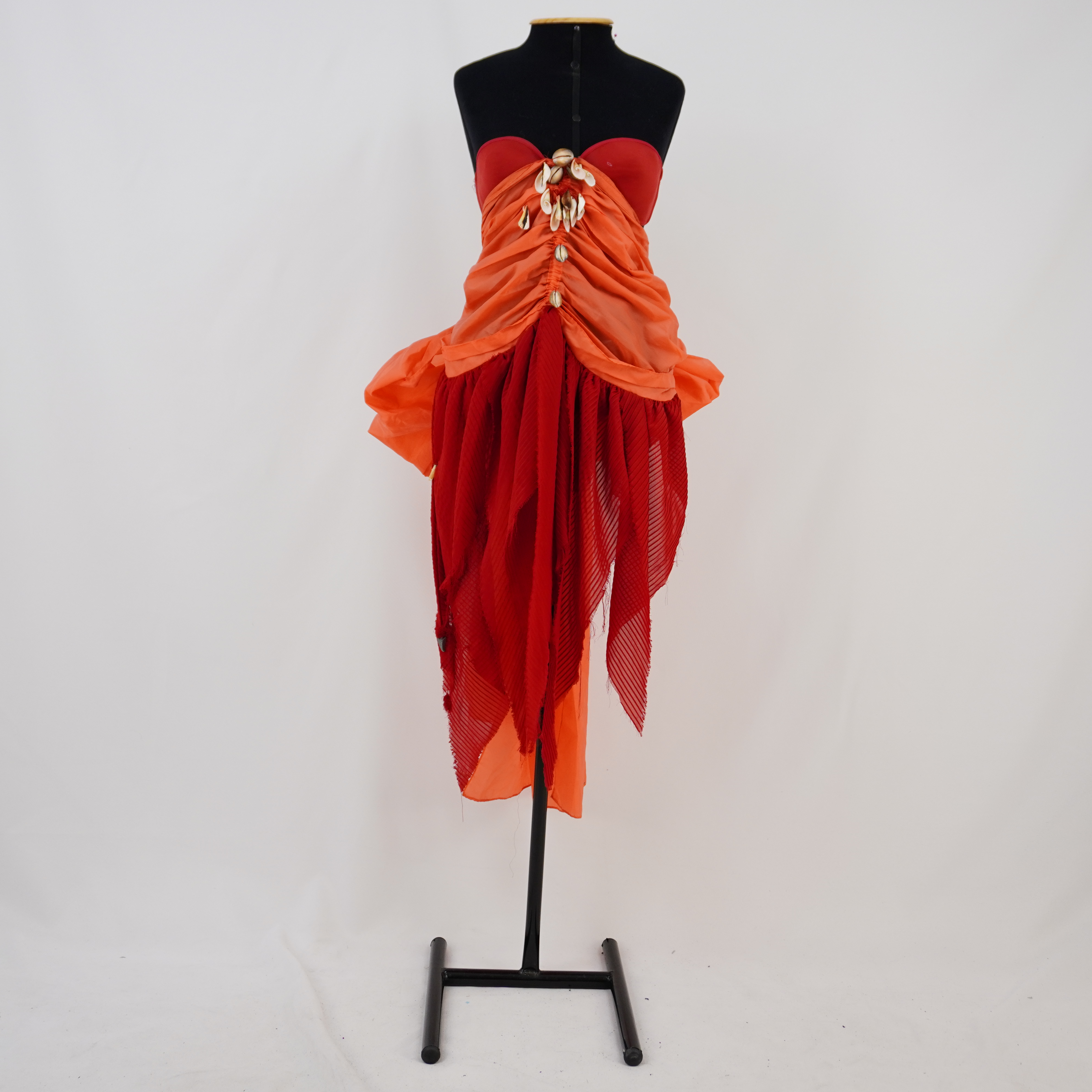 setembro 21, 2025 by Michelle Araujo Leia Mais...Vestido longo vermelho/coral, sem alças, com barbatanas no tronco, com ancas externas e aplicações de franja no decote, ancas e saia. Tronco em tule bordado, fechamento em zíper...