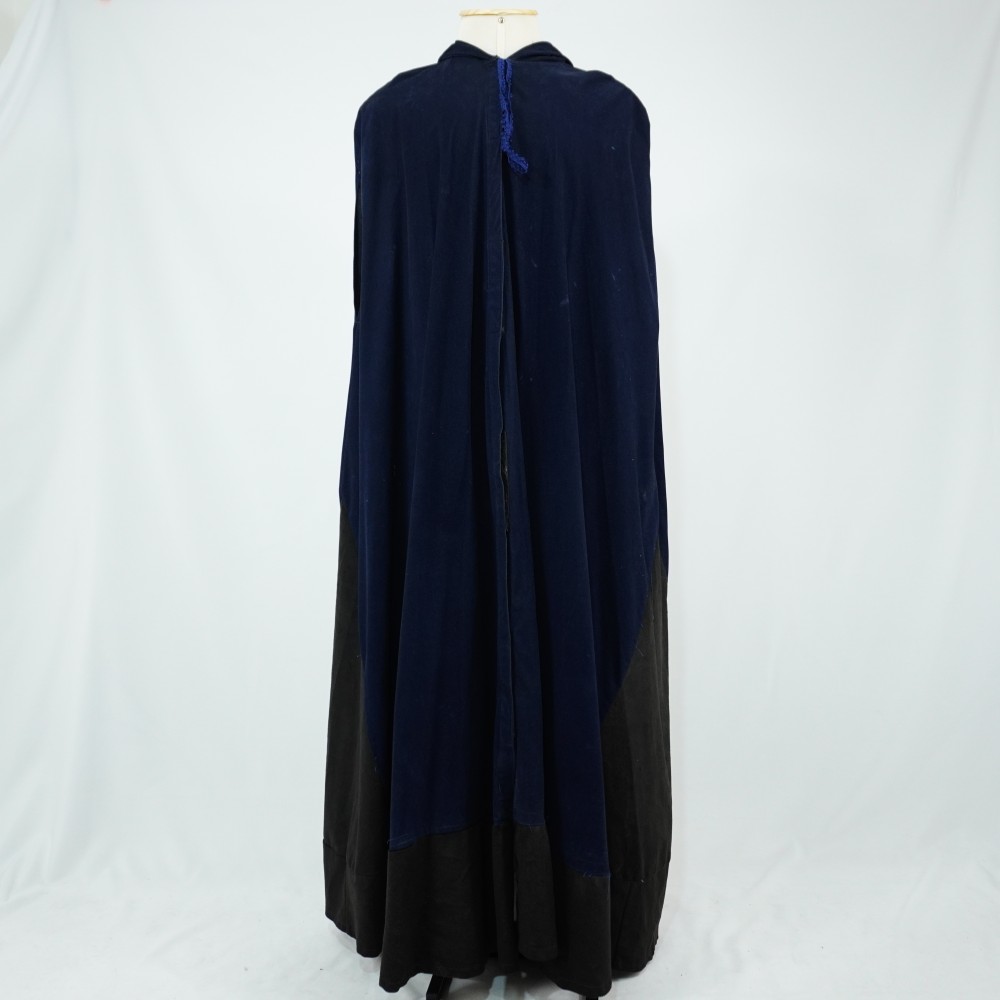 by Michelle Araujo Leia Mais...Capa com capuz azul marinho em camurça sintética, recorte nas costas, barra e laterais em camurça preta, fechamento em velcro, detalhe de passamanaria em azul royal na gola
