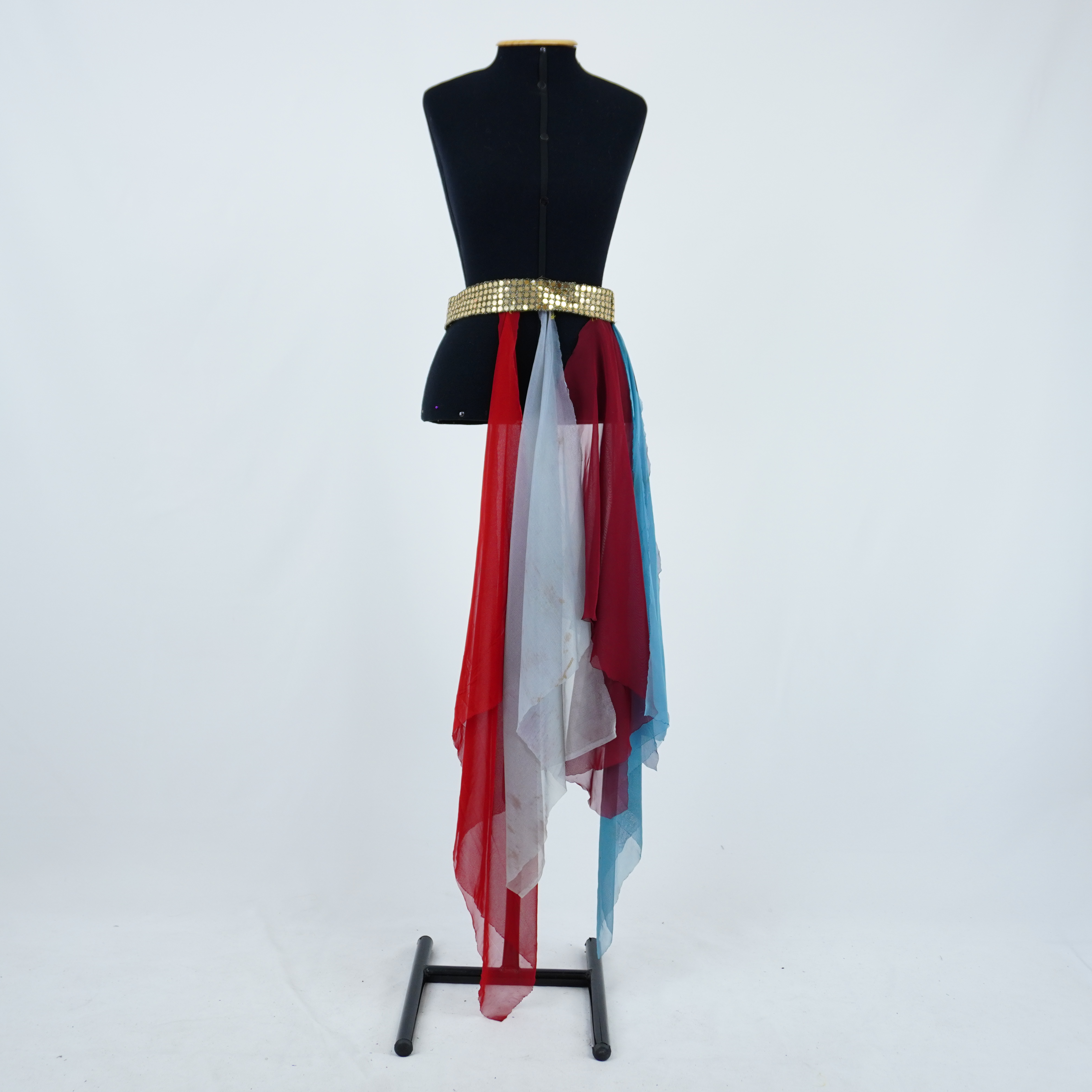 setembro 21, 2025 by Michelle Araujo Leia Mais...Cinto com tecido preto de paete lantejoulado dourado com retalhos de musseline vermelho, azul e cinza. Fechamento em azelha e botão de plástico