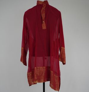agosto 15, 2025 by Michelle Araujo Leia Mais...Bata vermelha com tecido jacquard em vermelho e dourado