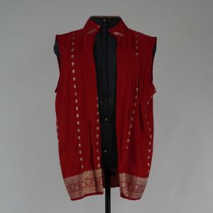 agosto 15, 2025 by Michelle Araujo Leia Mais...Colete vermelho e dourado em cetim com jacquard.