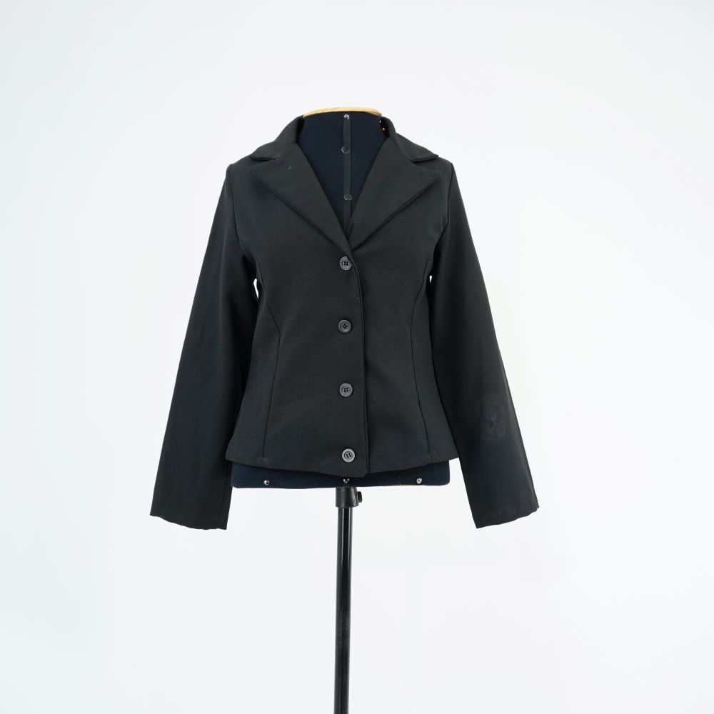 by Michelle Araujo Leia Mais...Blazer feminino acinturado preto, fechamento em quatro botões de plástico preto