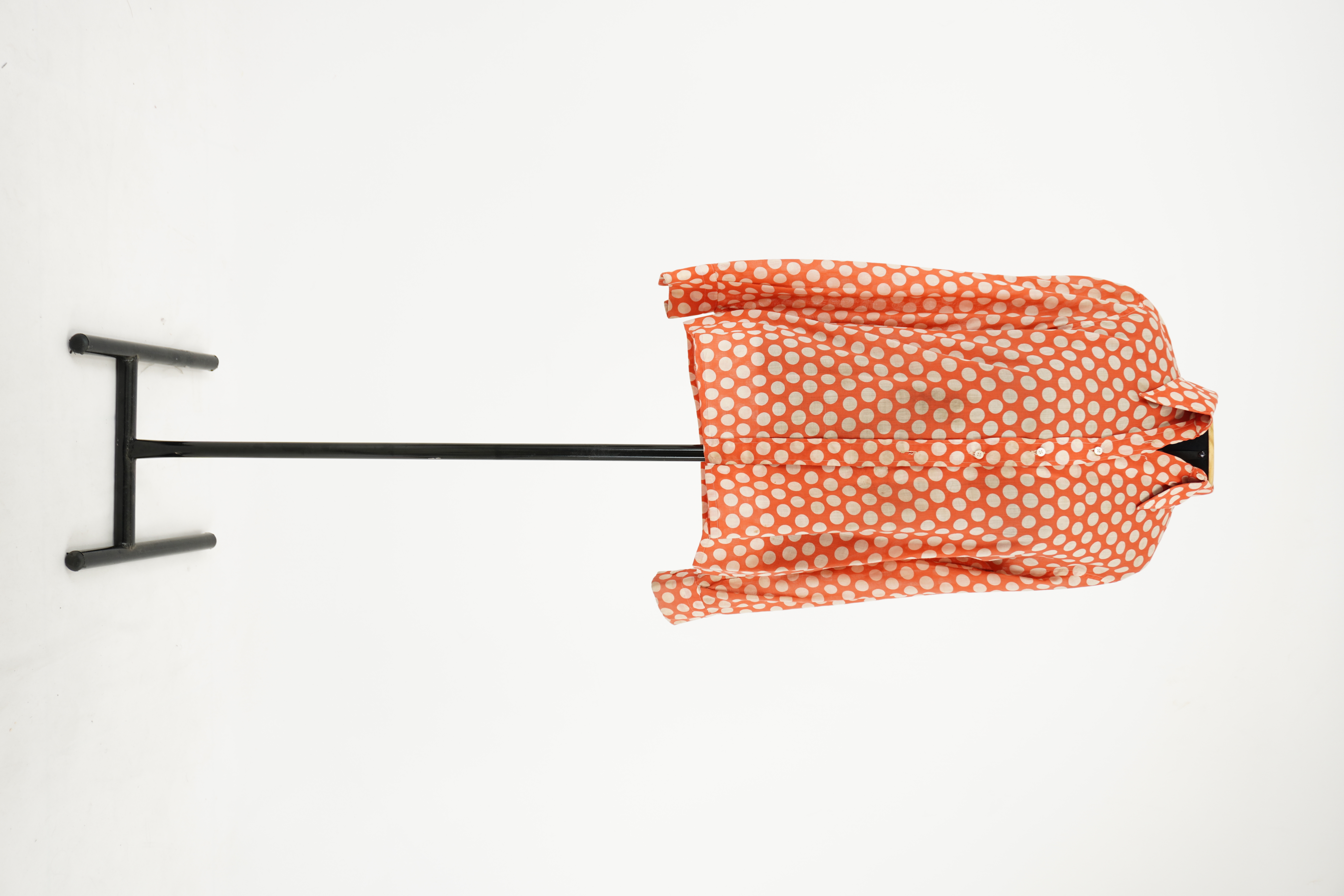 agosto 31, 2025 by Michelle Araujo Leia Mais...Camisa de manga longa laranja com estampa de poá branco, fechamento em botões de plástico