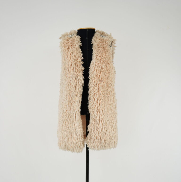 agosto 31, 2025 by Michelle Araujo Leia Mais...Colete de pelúcia em poliéster rosa, forro de poliéster com elastano e pedrarias costuradas nos ombros
