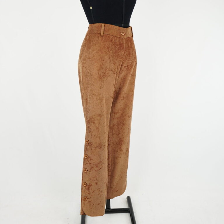 agosto 31, 2025 by Michelle Araujo Leia Mais...Calça caramelo canelada de poliéster, poliamida e elastano com fechamento de botões nas pernas, botão e zíper no cós.