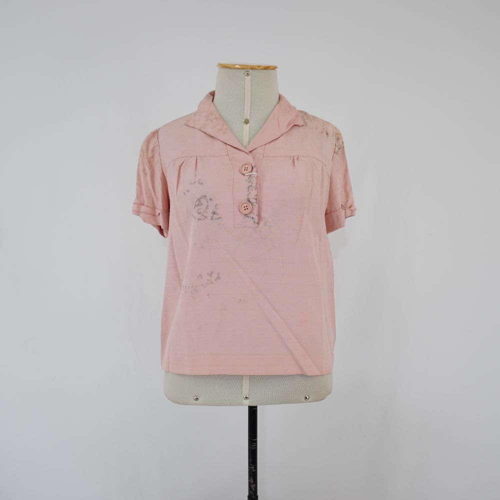 by Michelle Araujo Leia Mais...Camisa manga curta rosa bebê, vista no superior com fechamento em botões, pregueado no busto