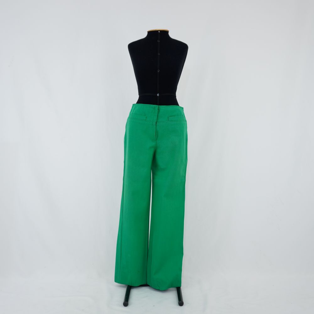 by Michelle Araujo Leia Mais...Calça reta verde bandeira com dois bolsos frontais falsos, fechamento em zíper frontal