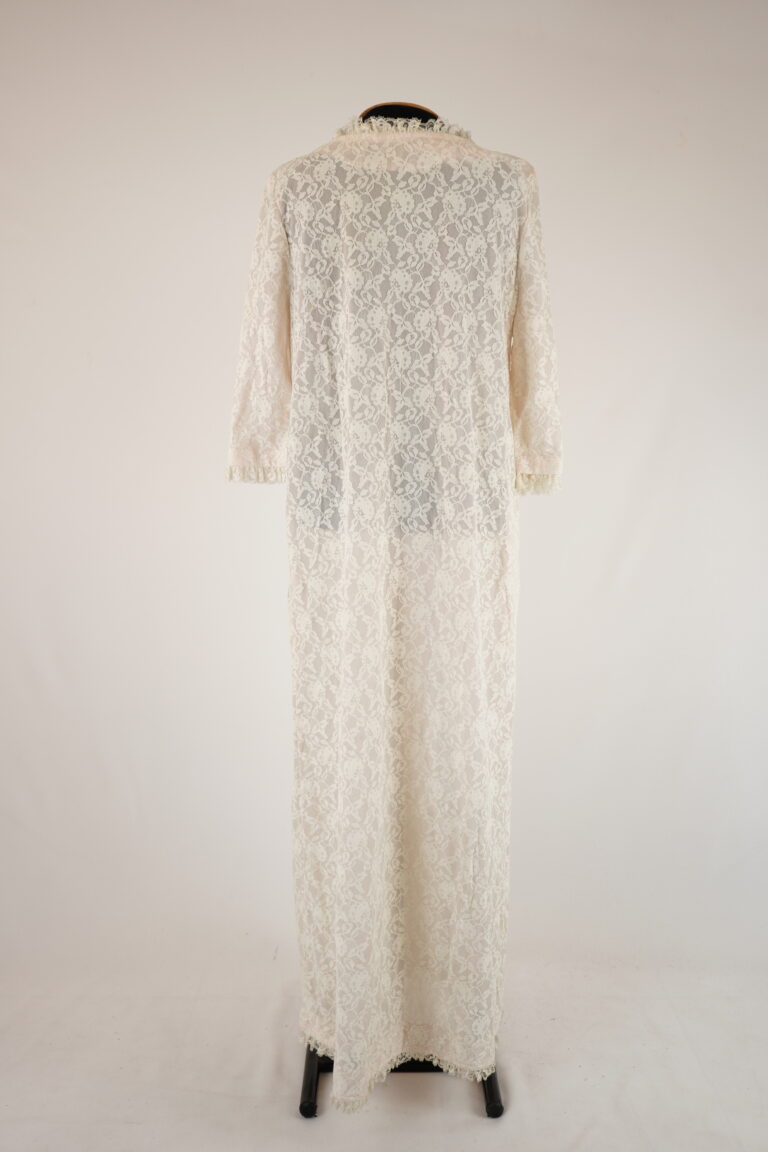 agosto 31, 2025 by Michelle Araujo Leia Mais...Vestido penhoar, tecido base rosa com renda branca por toda superfície. Fechamento em botão de pressão. Aplicação de rosas em cetim cor de rosa. Manga 3/4, longa possui...