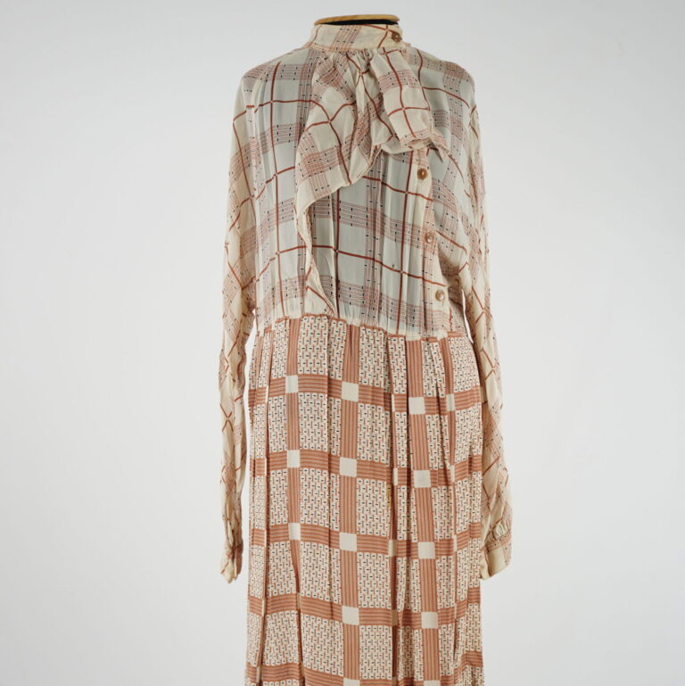 agosto 31, 2025 by Michelle Araujo Leia Mais...Vestido midi manga longa, manga morcego, estampado bege, marrom e preto, fechamento superior em botão de plástico, gola padre, saia pregueada.
