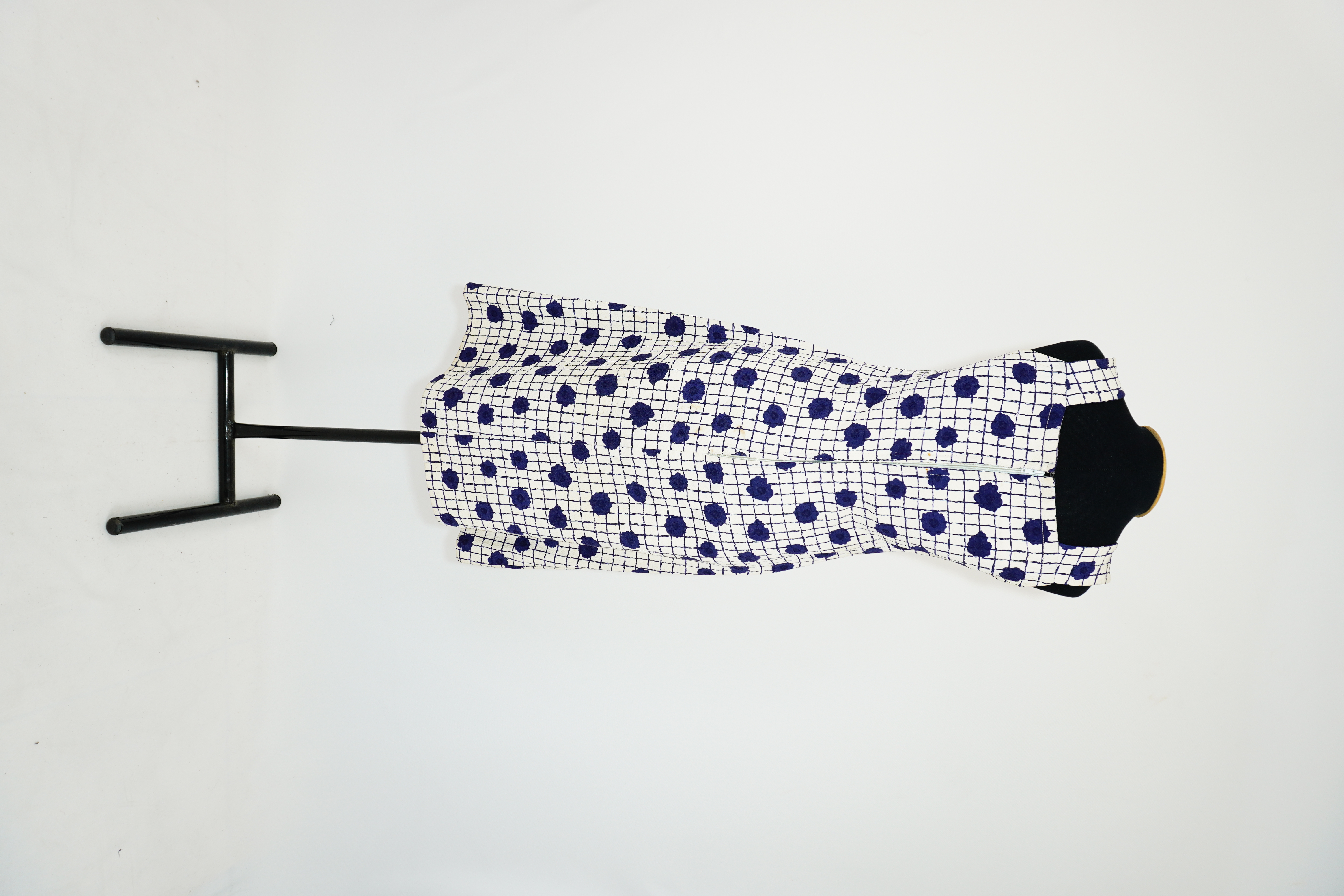 agosto 22, 2025 by Michelle Araujo Leia Mais...Vestido de alça midi em tecido estampado com fundo offwhite e desenhos em azul marinho.
