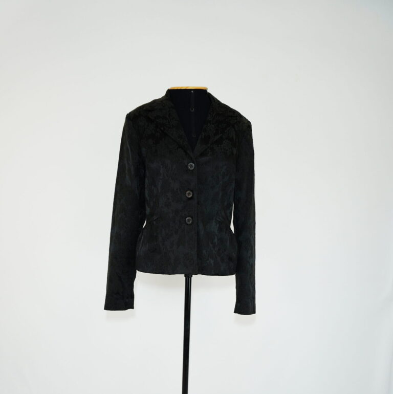 agosto 22, 2025 by Michelle Araujo Leia Mais...Blazer preto de jacquard com ombreiras