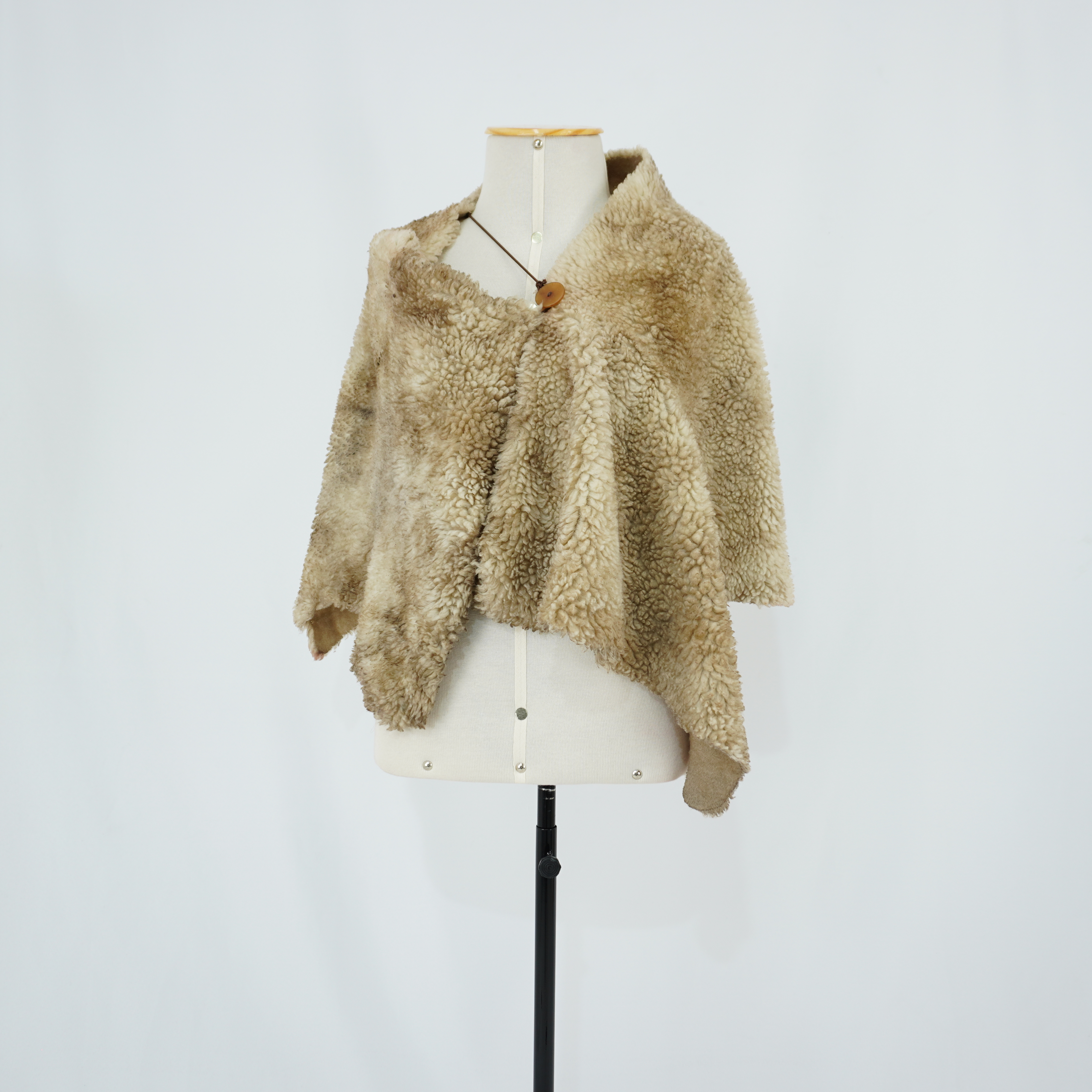 Batina preta com botões aplicados, na parte frontal existem duas nesgas com velcro que eram arrancadas para ficar de pernas de fora
