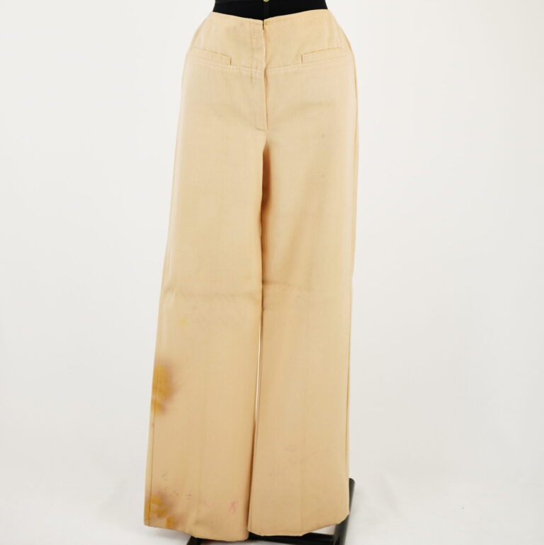agosto 22, 2025 by Michelle Araujo Leia Mais...Calça alfaiataria bege com fechamento em zíper com colchete e dois bolsos falsos na parte frontal