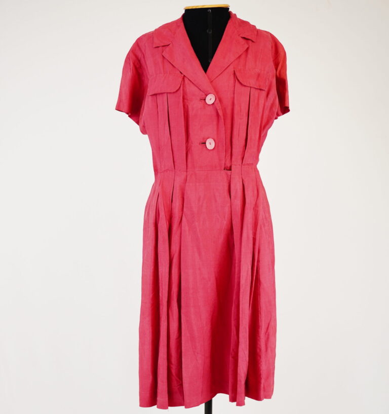 agosto 22, 2025 by Michelle Araujo Leia Mais...Vestido midi rosa de manga curta com saia pregueada, com lapela de bolso em cada lado do busto e fechamento frontal por botões