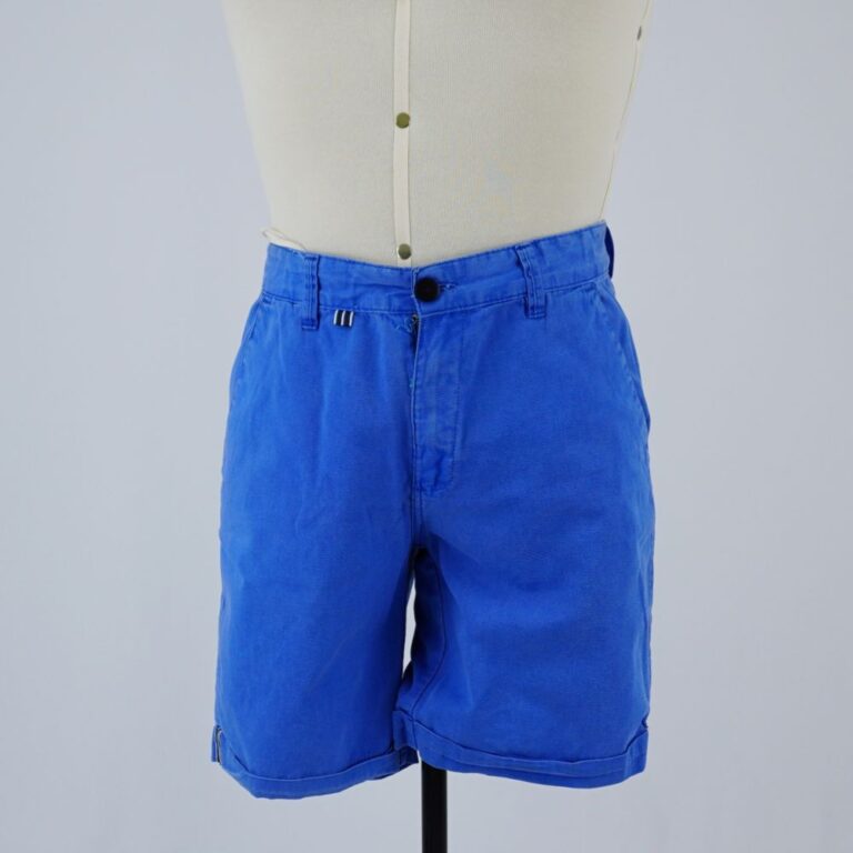 by Michelle Araujo Leia Mais...Bermuda azul claro com dois bolsos frontais e dois bolsos traseiros, barra italiana, detalhe em cordão na lateral da barra e no cós. Fechamento em zíper e botão.