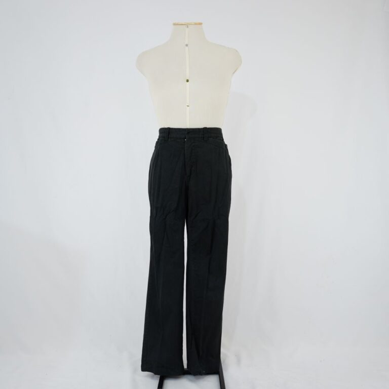 by Michelle Araujo Leia Mais...Calça preta reta, dois bolsos na frente e dois nas costas com aba, fechamento com botão em todos os bolsos. Fechamento da calça com botões e zíper de...