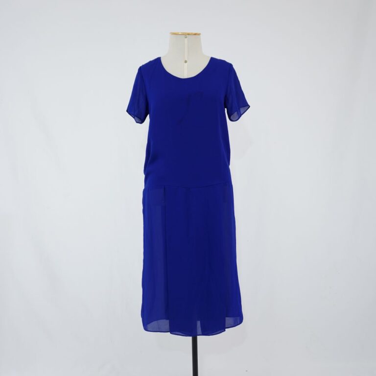 by Michelle Araujo Leia Mais...Vestido azul bic curto, manga curta, saia com duas pregas dianteiras e duas traseiras
