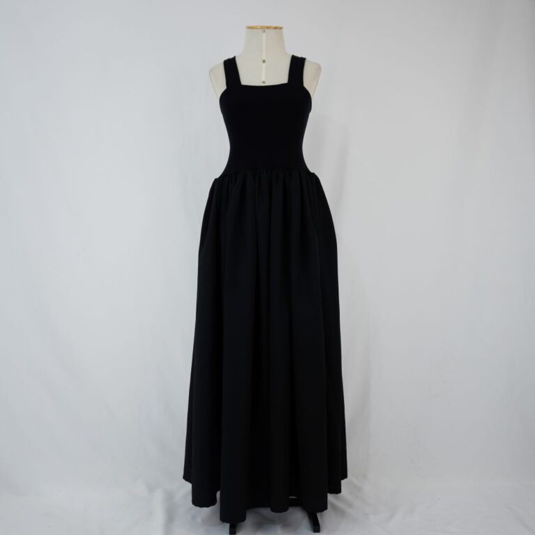 by Michelle Araujo Leia Mais...Vestido longo preto de alça, decote quadrado e saia modelagem godê