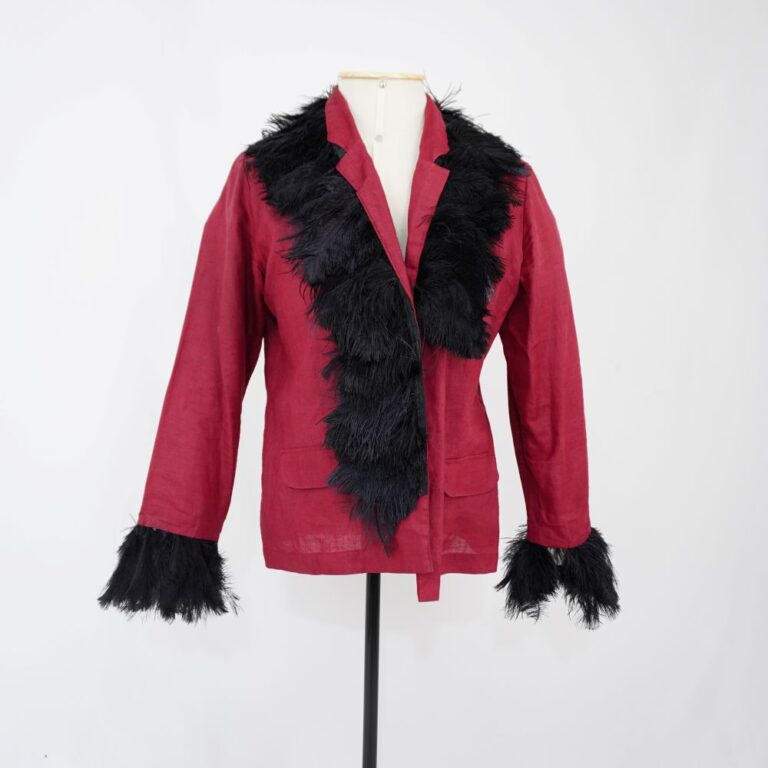 Calça social cinza com xadrez laranja, quatro pregas frontais e duas pences traseiras, dois bolsos laterais e dois bolsos embutidos com botão de plástico nas costas, oito passantes,...