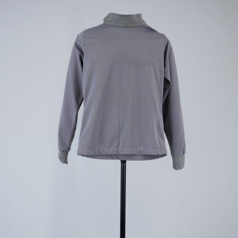 by Michelle Araujo Leia Mais...Blusa cinza de gola alta e manga longa. Gola e punhos em ribana cinza mesclado.