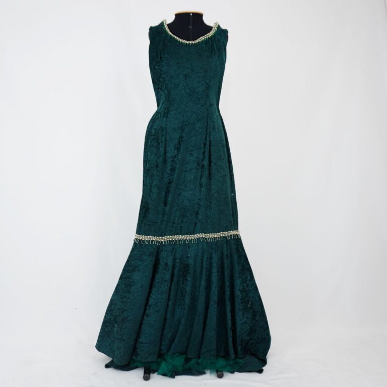 by Michelle Araujo Leia Mais...Vestido verde sem manga modelagem sereia com tule filó para armação de barra. Bordado no decote e junção do corpo com a saia de pérolas, canutilhos e miçanga....