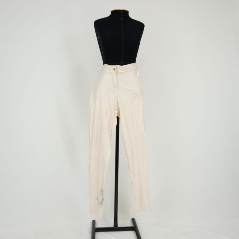 by Michelle Araujo Leia Mais...Calça cigarrete pérola com bolsos traseiros aplicados, fechamento por zíper e botão