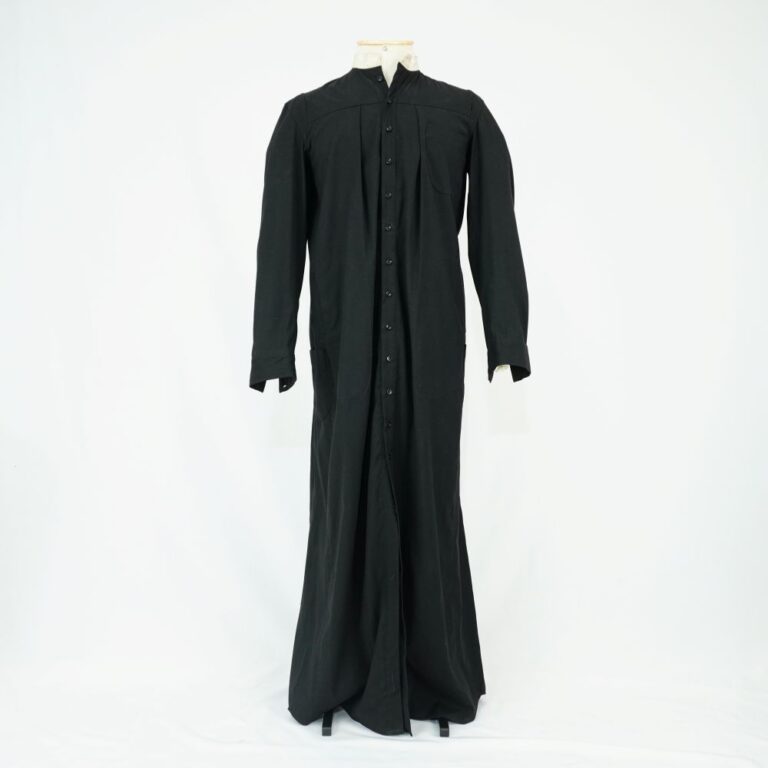 by Michelle Araujo Leia Mais...Batina preta Herchcovitch: Alexandre com gola padre branca fina, botões pequenos de plástico sendo um branco e quatorze botões pretos, bolso superior do lado esquerdo e bolso faca...