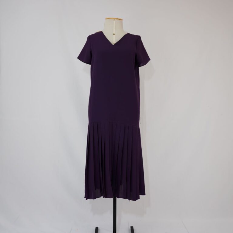 by Michelle Araujo Leia Mais...Vestido roxo manga curta, comprimento meio da perna, cintura deslocada pra baixo com saia pregueada, uma casa de botão em cada ombro