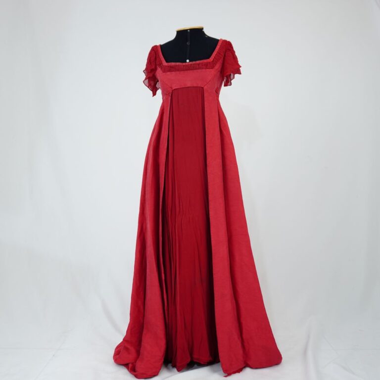 by Michelle Araujo Leia Mais...Vestido imperial longo com cauda, manga em musseline franzido, decote do busto com pregueado. Saia interna em musseline e externa sarjado. Fechamento nas costas em zíper e colchete