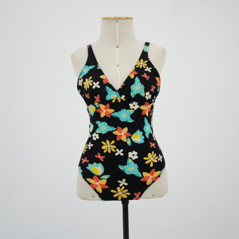 by Michelle Araujo Leia Mais...Maiô fundo preto com estampa de flores em tons de azul, verde, vermelho, laranja, amarelo e branco. Pregas no busto, costas com recorte arredondado e fechamento em fecho...