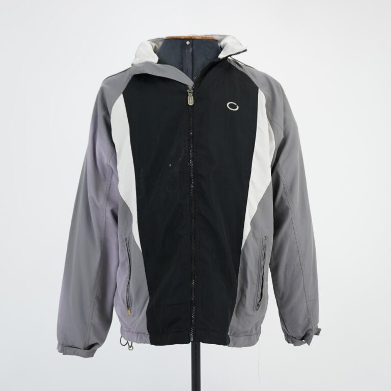 by Michelle Araujo Leia Mais...Jaqueta agasalho tactec cinza com recortes brancos e pretos, dois bolsos frontais externos, um bolso interno, forro em tela, ajuste na barra e capuz com elástico. Capuz dobrável...
