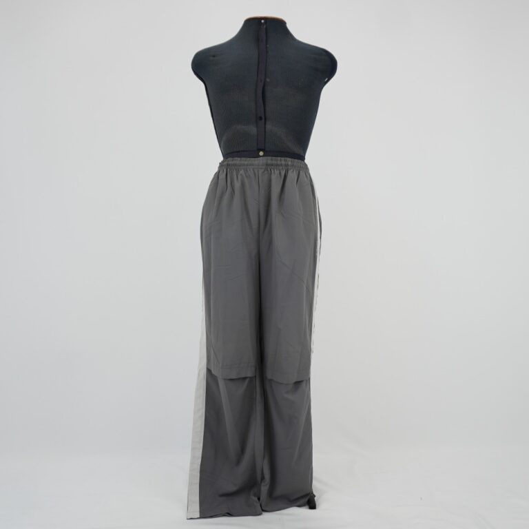 by Michelle Araujo Leia Mais...Calça agasalho tactel cinza com faixa nas laterais em branco, recorte no joelho com tela embutida, dois bolsos laterais com fechamento em zíper, cós franzido com cadarço para...