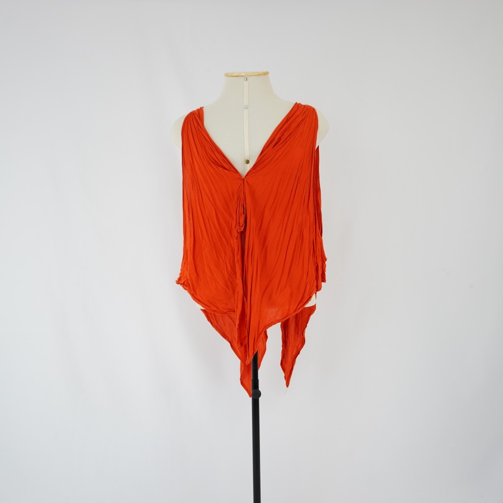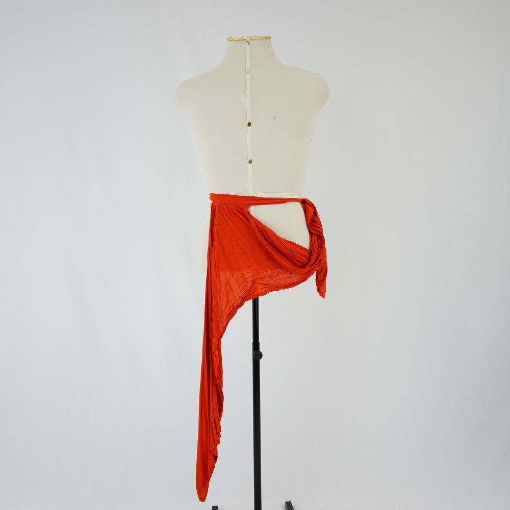 by Michelle Araujo Leia Mais...Acessório de figurino laranja com amarração no centro de uma das extremidades, com pregas, tela simples.