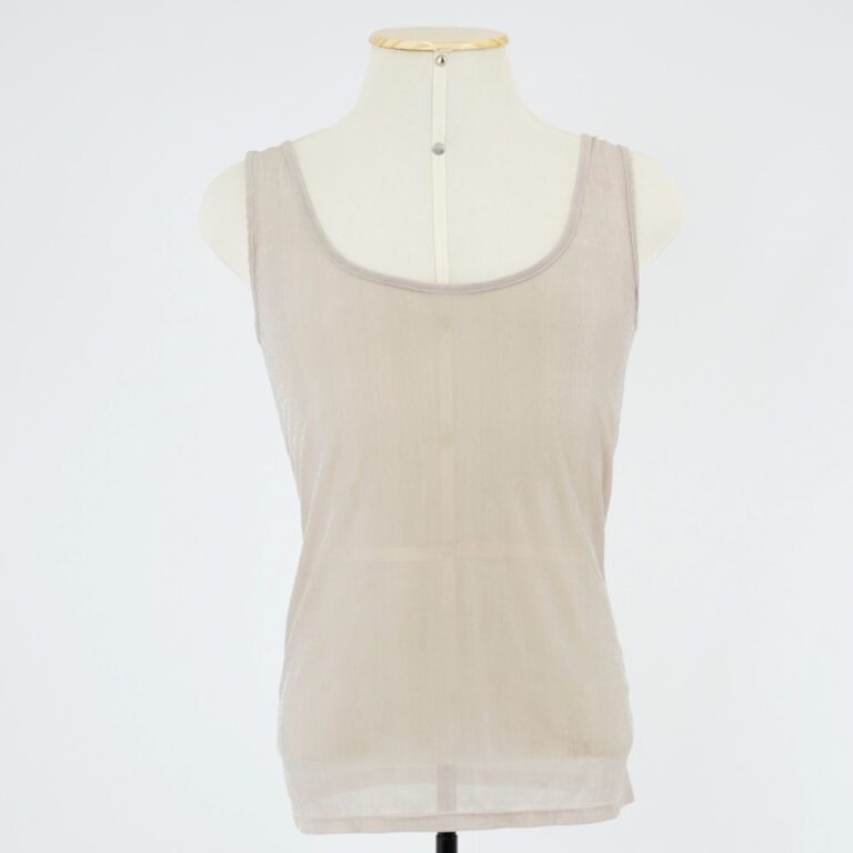 by Michelle Araujo Leia Mais...Regata de malha canelada com lurex, possui transparência, cor bege rosado