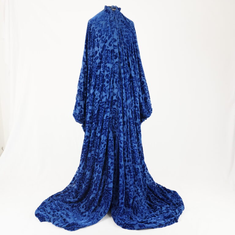 by Michelle Araujo Leia Mais...Capa/hobby amplo em malha de veludo devoré azul marinho, fechamento em velcro na parte frontal.