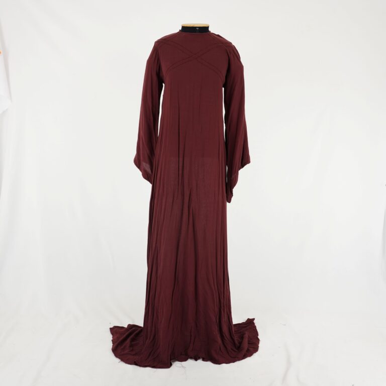 by Michelle Araujo Leia Mais...Vestido longo com manga longa pendente, em viscose marrom com nervuras em quadriculado no busto, fechamento em botão de plástico na nuca