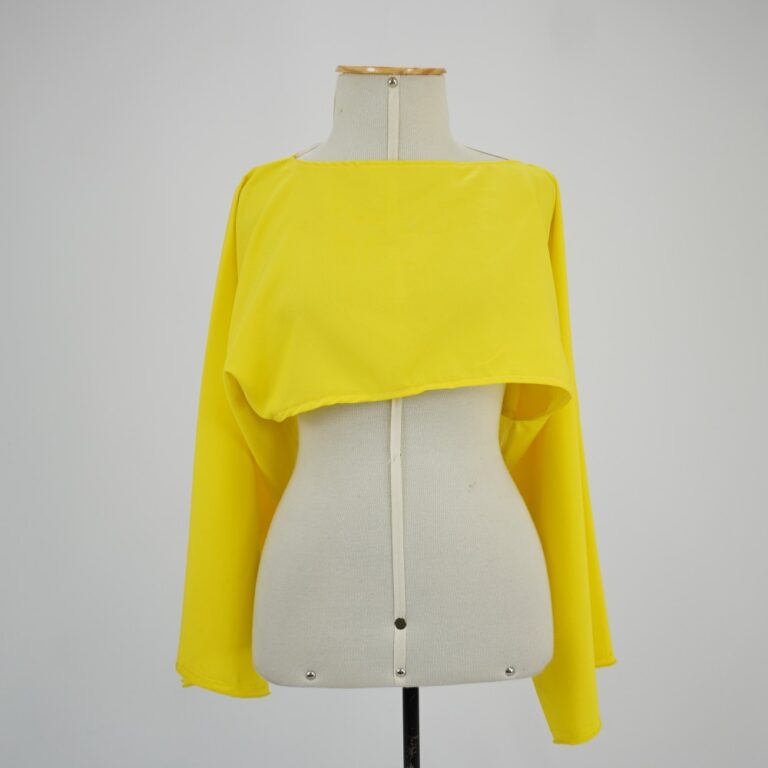 by Michelle Araujo Leia Mais...Túnica cropped manga longa amarela. Barra da manga a fio com ourela do tecido.