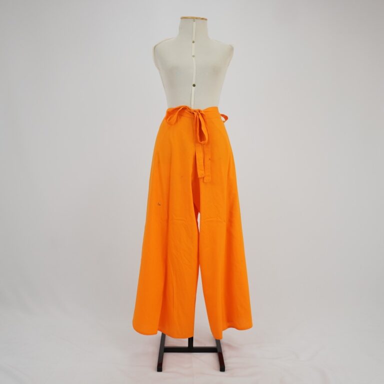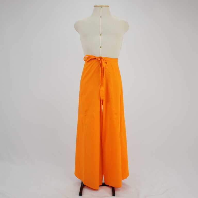 by Michelle Araujo Leia Mais...Calça envelope laranja com amarração na cintura e barra arredondada